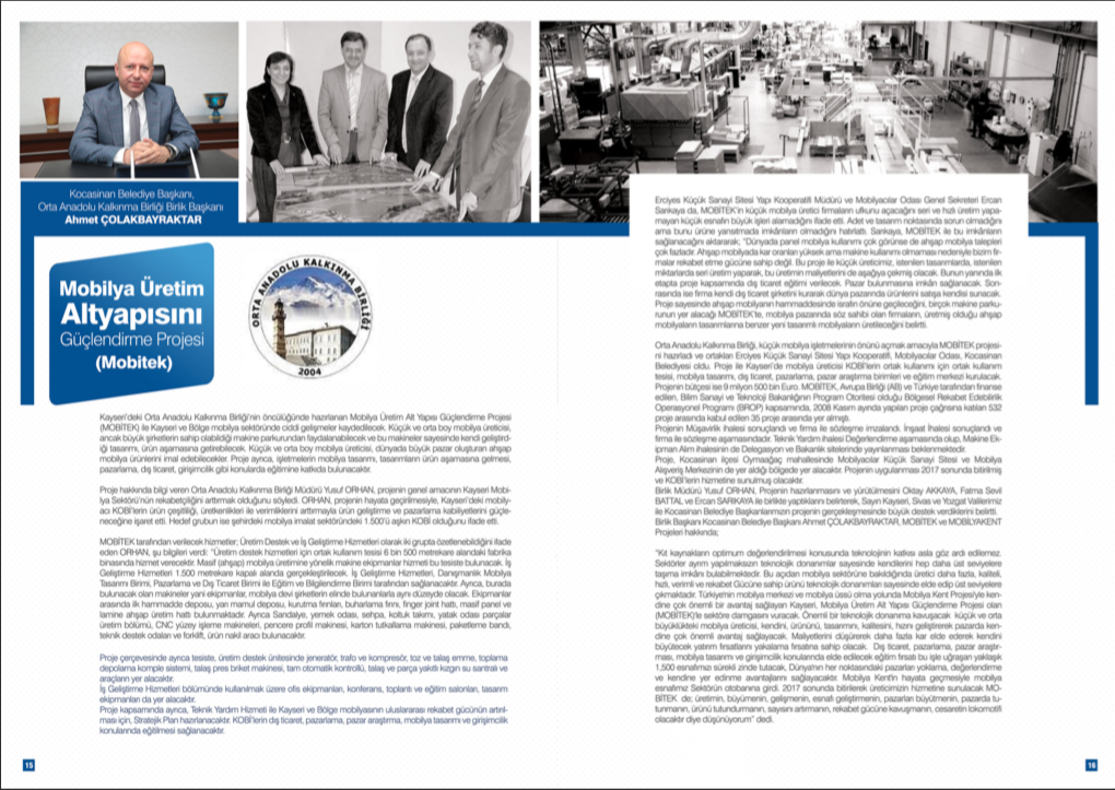 SANAYİ VE TEKNOLOJİ BAKANLIĞINCA DESTEKLENEN MOBİTEK KAPSAMINDA YAKLAŞIK 10 MİLYON EURO MALİYETLE YÜKSEK TEKNOLOJİ MAKİNELERLE OLUŞTURULAN KAYSERİ'DEKİ MOBİLYA ÜRETİM TESİSİ, ORTA VE KÜÇÜK ÖLÇEKLİ İŞLETMELERİ BULUŞTURACAK.